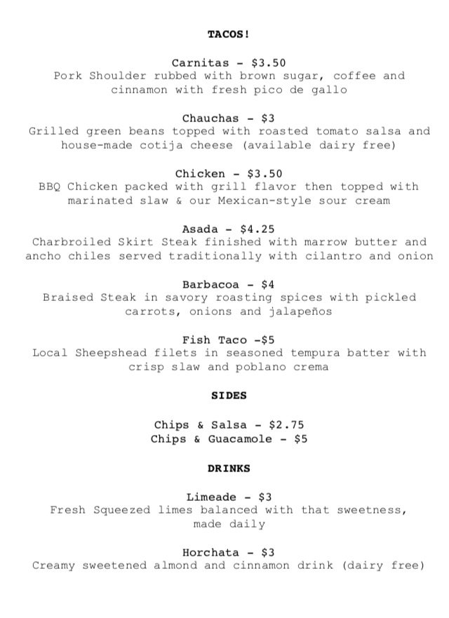 Block Taco Menu (Update 2025)